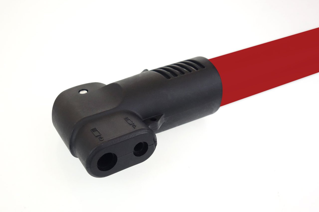 Pompa de bicicleta din aluminiu adaptata la doua tipuri de supape. Setul include un suport pentru montare pe cadrul bicicletei sub sticla de apa.